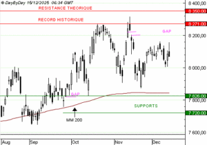 Bourse CAC40 : Latéralisation dans un environnement sous tension | Antoine Quesada – Chrono CAC TVF 12 décembre 2025